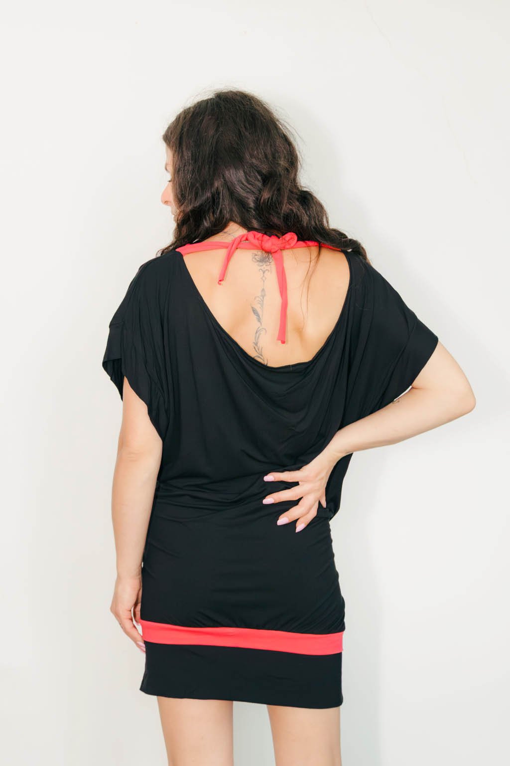 Otvorený chrbát so zaväzovaním dodáva šatám vzdušnosť a jemnú zmyselnosť. Ideálne na letné dni, večerné drinky, výstavy alebo len tak – keď chceš nosiť niečo, v čom sa cítiš sama sebou.